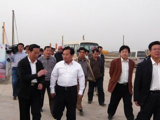 2008年4月14日,濰坊市委書(shū)記張新起視察集團公司施工中的奧體中心工程。集團公司總經(jīng)理朱九洲(左上圖左三)陪同張書(shū)記視察 |