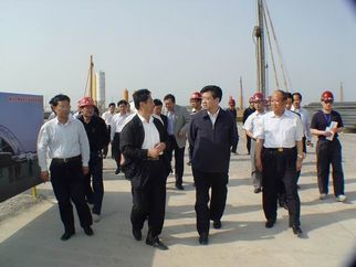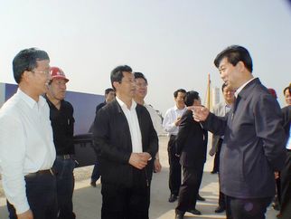 2008年5月5日下午,許立全市長(cháng)視察建設中的奧體中心工程。董事長(cháng)徐鵬強(上圖左一)陪同視察。 |
