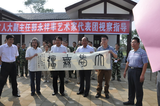 6月3日上午,四川省人大副主任郭永祥率藝術(shù)家代表團赴北川新縣城慰問(wèn)援建士。藝術(shù)家們或現場(chǎng)作畫(huà),或引亢高歌,或與援川員工同臺表演,真誠表達他們對山東人民援川的感激之情。集團公司援川員工還為藝術(shù)家代表團合唱《援川之歌》。慰問(wèn)演出前,郭永祥副主任還視察了集團公司援建的安居房工程,藝術(shù)家們還實(shí)地參觀(guān)了新的安居房家居,看到漂亮、舒適的安居房,聽(tīng)著(zhù)援川人的感人事跡,藝術(shù)家們表達了對援川將士的由衷贊嘆,并再一次代表北川縣的受災同胞對山東的援建表示真誠的謝意。 ![]() 圖為藝術(shù)家展示藝術(shù)作品
