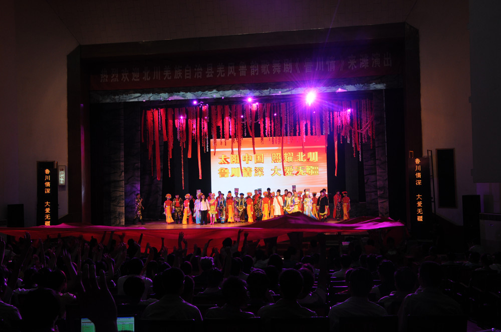 6月15日晚,由四川省北川羌族自治縣文化旅游局與威海演藝有限公司聯(lián)手打造的“羌風(fēng)魯韻歌舞劇——魯川情”在濰州劇場(chǎng)上演。集團公司組織曾經(jīng)參加過(guò)援川建設的員工150人現場(chǎng)觀(guān)看演出,這些人員包括:第二分公司30人、第四分公司40人、第八分公司30人、安裝分公司10人、園林公司5人、市政公司30人,集團總部5人。此次觀(guān)看《魯川情》文藝演出,是根據市委的統一安排而進(jìn)行的,市建設系統共組織了包括了集團公司在內的200人觀(guān)看了這場(chǎng)演出。