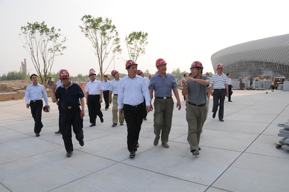 5月9日下午,市委副書(shū)記王獻玲在市委有關(guān)部門(mén)負責同志陪同下到集團公司承建的會(huì )展中心工程視察。集團公司董事長(cháng)、黨委書(shū)記徐鵬強全程陪同視察。
