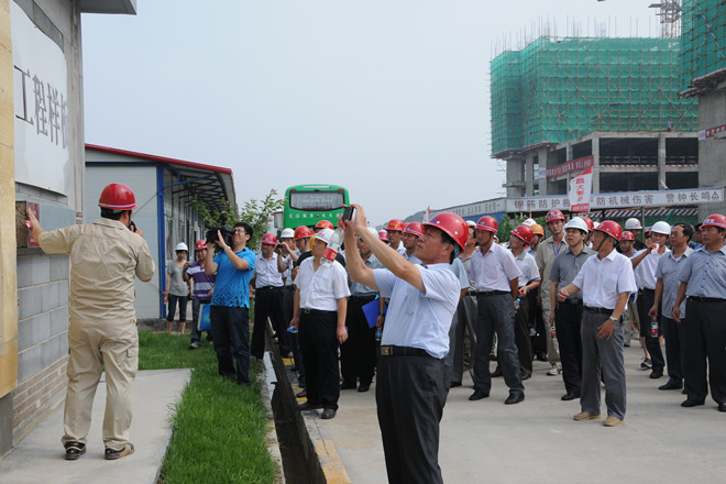 7月25日上午,由濰坊市建筑工程管理處組織的“全市施工現場(chǎng)綜合管理樣板工程暨預攪拌砂漿推廣現場(chǎng)會(huì )”在集團公司第四分公司承建的金融廣場(chǎng)舉行。來(lái)自濰坊各縣市區、市屬開(kāi)發(fā)區建工處(局)分管主任(局長(cháng))、有關(guān)科室負責人;全市房屋建筑施工總承包一級企業(yè)和部分二級企業(yè)分管經(jīng)理,部分預攪拌砂漿生產(chǎn)企業(yè)代表共計120余人參加了現場(chǎng)會(huì )。集團公司總工程師張連悅出席現場(chǎng)會(huì )并做專(zhuān)題經(jīng)驗介紹,集團公司質(zhì)量技術(shù)部、生產(chǎn)安全部、資產(chǎn)管理部等有關(guān)部門(mén)相關(guān)人員參加了上午的現場(chǎng)會(huì )。