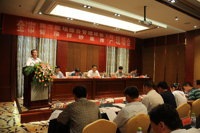 濰坊市施工現場(chǎng)綜合管理板樣工程暨預攪拌砂漿推廣現場(chǎng)會(huì )在濰坊昌大建設集團金融廣場(chǎng)舉行