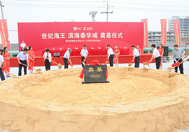 2013年6月1日上午,由濱海區管委會(huì )組織的濱海泰華城、世紀海王項目奠基儀式在濱海區府前街與海港路交匯處東北角隆重舉行,集團公司總經(jīng)理朱九洲出席奠基儀式并與主席臺領(lǐng)導一同為項目培土奠基。出席儀式的領(lǐng)導還有濰坊市副市長(cháng)、濱海區黨工委書(shū)記王樹(shù)華,濱海區黨工委副書(shū)記、管委會(huì )主任張恒道,濱海區管委會(huì )副主任王希光,建設銀行濰坊分行行長(cháng)陳鵬,浦發(fā)銀行濰坊分行副行長(cháng)劉兆建,山東世紀泰華集團董事長(cháng)劉云江,山東海王集團黨委副書(shū)記、副總經(jīng)理崔秀勝等。集團公司第二分公司領(lǐng)導班子成員及員工代表,濱海區黨工委和管委會(huì )有關(guān)人員、項目所在地有關(guān)部門(mén)負責人參加了上述活動(dòng)。