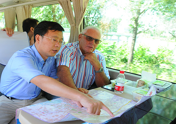 19日,沃克夫婦一行先后參觀(guān)了濰坊城市規劃藝術(shù)館、北辰綠洲濕地公園、奧體公園體育場(chǎng)、會(huì )展中心、火車(chē)站南廣場(chǎng)、寶通陸號、泰和上筑、集團新辦公樓。在城市規劃藝術(shù)館,沃克夫婦一行參觀(guān)了濰坊城市規劃沙盤(pán)、觀(guān)看了濰坊城市規劃影片,對濰坊市的基本情況有了一個(gè)整體了解;在北辰綠洲濕地公園,濰坊市規劃局副局長(cháng)楊錫忠、規劃用地科科長(cháng)王列生陪同參觀(guān)并介紹了北辰中央休閑區的項目定位、總體規劃和商業(yè)開(kāi)發(fā)用地情況,沃克先生表示對該項目很感興趣;在火車(chē)站南廣場(chǎng)開(kāi)發(fā)建設指揮部,市建設局副調研員付深遠向客人介紹了火車(chē)站南廣場(chǎng)周邊地區規劃方案。