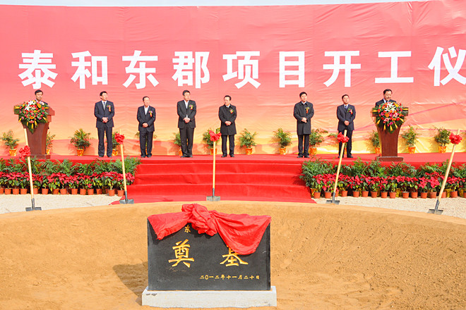 2012年11月20日上午,由集團泰和公司開(kāi)發(fā)的“泰和東郡”項目舉行了隆重的開(kāi)工奠基儀式。集團高管層領(lǐng)導徐鵬強、李坤明、姜建魯、穆乃杰、張連悅、閆鵬、劉雁冰出席開(kāi)工奠基儀式。出席開(kāi)工奠基儀式并在主席臺就位的領(lǐng)導和嘉賓有濰坊市委常委、高新區黨工委書(shū)記、管委會(huì )主任趙志遠,高新區黨工委副書(shū)記、管委會(huì )副主任陳甲才,高新區黨工委委員、管委會(huì )副主任兼經(jīng)發(fā)局局長(cháng)曲志剛,高新區黨工委委員、黨政辦公室主任唐偉,集團董事長(cháng)徐鵬強,山東海王銀河醫藥公司董事長(cháng)孔憲俊,集團副總經(jīng)理兼泰和公司總經(jīng)理姜建魯。集團全體中層以上人員、第四分公司部分管理人員參加了開(kāi)工奠基儀式。開(kāi)工奠基儀式由高新區黨工委委員、管委會(huì )副主任譚建民主持。
