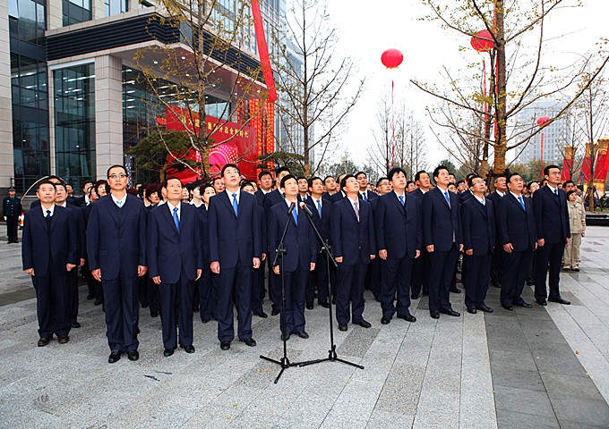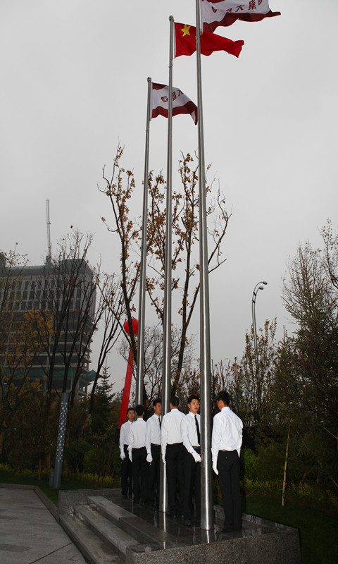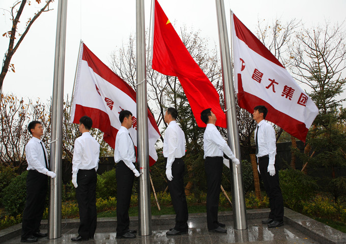 2013年11月9日早8時(shí),集團在新辦公樓廣場(chǎng)升旗臺前隆重舉行了首次升國旗(企業(yè)司旗)儀式。 五星紅旗是中華人民共和國的標志和象征,五星紅旗作為中華民族五千年歷史上第一面代表全體人民意志的民族之旗、團結之旗、勝利之旗、希望之旗、吉祥之旗。舉行升旗儀式,就是昭示人們祖國的利益高于一切,要熱愛(ài)祖國。集團喬遷新辦公樓當天舉行升旗儀式,意義重大。 早7時(shí)50分,在集團新辦公樓辦公的集團高管層領(lǐng)導、集團總部及基層單位(子公司)全體員工300余人集結完畢,列隊站立,準備迎接升旗儀式。7時(shí)57分,6名護旗手邁著(zhù)整齊的步伐走向升旗臺;8時(shí)整,隨著(zhù)主持人一聲振奮人心的“奏國歌、升國旗”,伴隨著(zhù)莊嚴的《中華人民共和國國歌》,鮮艷的五星紅旗在隨后升起的兩面昌大司旗映托下,在行注目禮的三百余雙眼睛注目中冉冉升起。昌大人在此時(shí)此刻用自己的方式表達了對祖國的敬意,也闡釋了對企業(yè)新的美好時(shí)代的向往和期盼。新的時(shí)代,昌大已經(jīng)走來(lái),新的時(shí)代,昌大正快步向前!