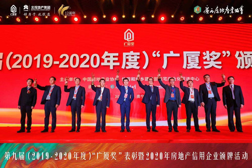 2021年4月8日,由中國房地產(chǎn)業(yè)協(xié)會(huì )、住房和城鄉建設部住宅產(chǎn)業(yè)化促進(jìn)中心共同主辦的第九屆(2019-2020年度)“廣廈獎”表彰暨2020年房地產(chǎn)信用企業(yè)頒牌活動(dòng)在廣西南寧隆重舉行。由集團匠心筑造的泰和上筑北區項目獲得的“廣廈獎”獎杯由此領(lǐng)回。這是集團又一次榮獲房地產(chǎn)業(yè)的最高獎“廣廈獎”。廣廈獎,有著(zhù)“房地產(chǎn)界奧斯卡獎”的美譽(yù)。作為國家房地產(chǎn)行業(yè)最權威的綜合性獎項,每?jì)赡暝u選一次,與建筑領(lǐng)域“魯班獎”、設計領(lǐng)域“梁思成獎”齊名,代表著(zhù)中國房地產(chǎn)綜合開(kāi)發(fā)水平的最高榮譽(yù)。據悉,獲獎項目必須是規劃設計水平高、環(huán)境好、質(zhì)量?jì)?yōu)、性能好,在推進(jìn)建筑工業(yè)化、綠色低碳和解決群眾住房問(wèn)題方面能起示范、帶動(dòng)作用,其申報和評定有著(zhù)嚴格的程序和標準。