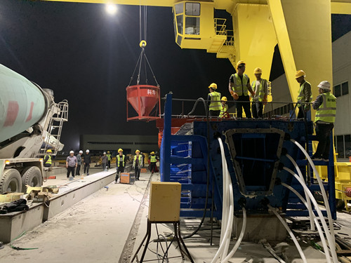 2021年5月7號凌晨3:00,集團承建濰坊寶通街高架快速路工程項目首件預制箱梁歷經(jīng)3個(gè)小時(shí)順利完成澆筑。標志著(zhù)集團為寶通街高架快速路工程而建設的預制梁場(chǎng)正式投入生產(chǎn)。集團總裁朱九洲親臨現場(chǎng)指導,副總裁閆鵬陪同。據悉,昌大建科為保證工程進(jìn)度共設置兩個(gè)預制梁場(chǎng),1#預制梁場(chǎng)占地約為15500m2,2#預制梁場(chǎng)占地面積約為13000m2。共設計臺座110個(gè),將生產(chǎn)720片箱梁。依托昌大建科的裝配式加工配送優(yōu)勢,全部實(shí)現了廠(chǎng)區內鋼筋加工配送和混凝土的加工配送。預制箱梁計劃6月30日開(kāi)始吊裝,9月7日全部吊裝完成。據現場(chǎng)觀(guān)摩人員介紹,首件箱梁觀(guān)感質(zhì)量非常好。 寶通街快速路作為濰坊中心城區首條高架快速路,對提升城市功能品質(zhì),增強中心城區輻射帶動(dòng)能力意義重大。預制梁場(chǎng)正式投產(chǎn),對于項目順利開(kāi)展,保證工程進(jìn)度具有重要意義。 ![]() ![]() ![]() ![]() ![]() ![]() |