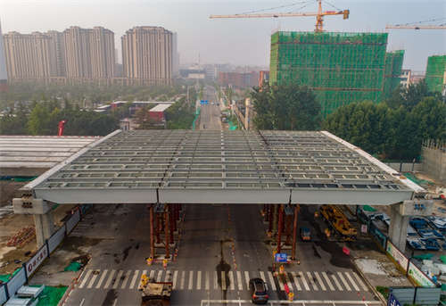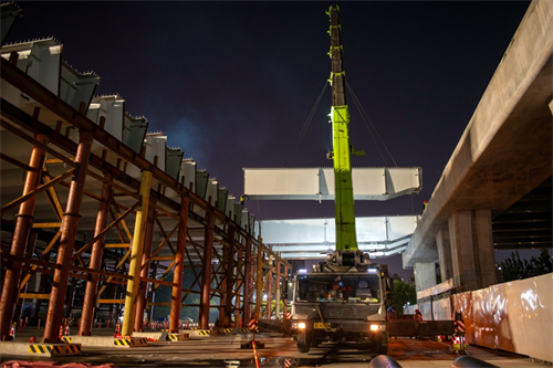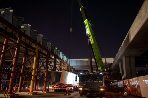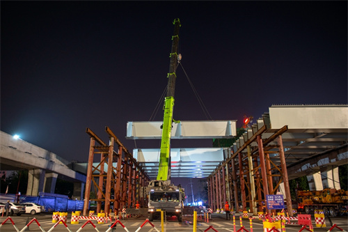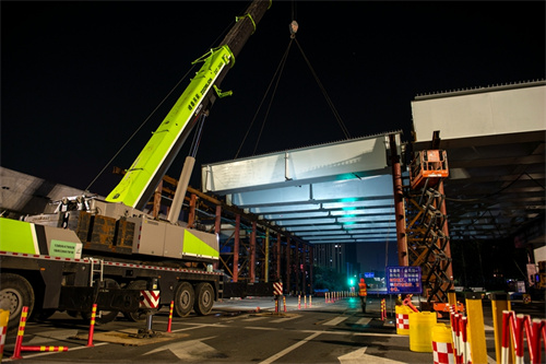 奮戰兩個(gè)晚上完成路口鋼箱梁吊裝為市民提供最大便捷——集團寶通街快速路東方路、金馬路路口鋼箱梁吊裝完成