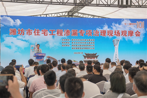 2022年7月1日上午,由濰坊市住建局組織的“濰坊市住宅工程滲漏專(zhuān)項治理”觀(guān)摩會(huì )在集團二建公司總承包施工的海通恒信·鳶都名筑項目現場(chǎng)舉行。