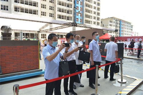 集團總工程師房海、質(zhì)量技術(shù)部總經(jīng)理劉文、二建公司總經(jīng)理李建成參加觀(guān)摩活動(dòng)。各縣市區住建局分管局長(cháng)、建筑業(yè)發(fā)展中心主任、施工企業(yè)代表等200余人參加了上午的觀(guān)摩活動(dòng)。