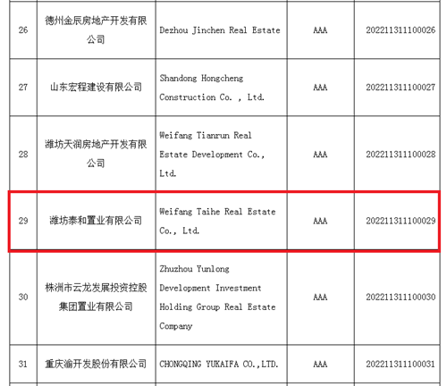 集團泰和置業(yè)再獲全國房地產(chǎn)開(kāi)發(fā)企業(yè)AAA級信用等級
